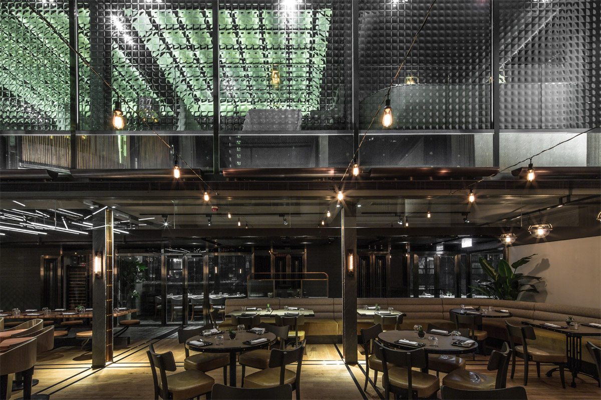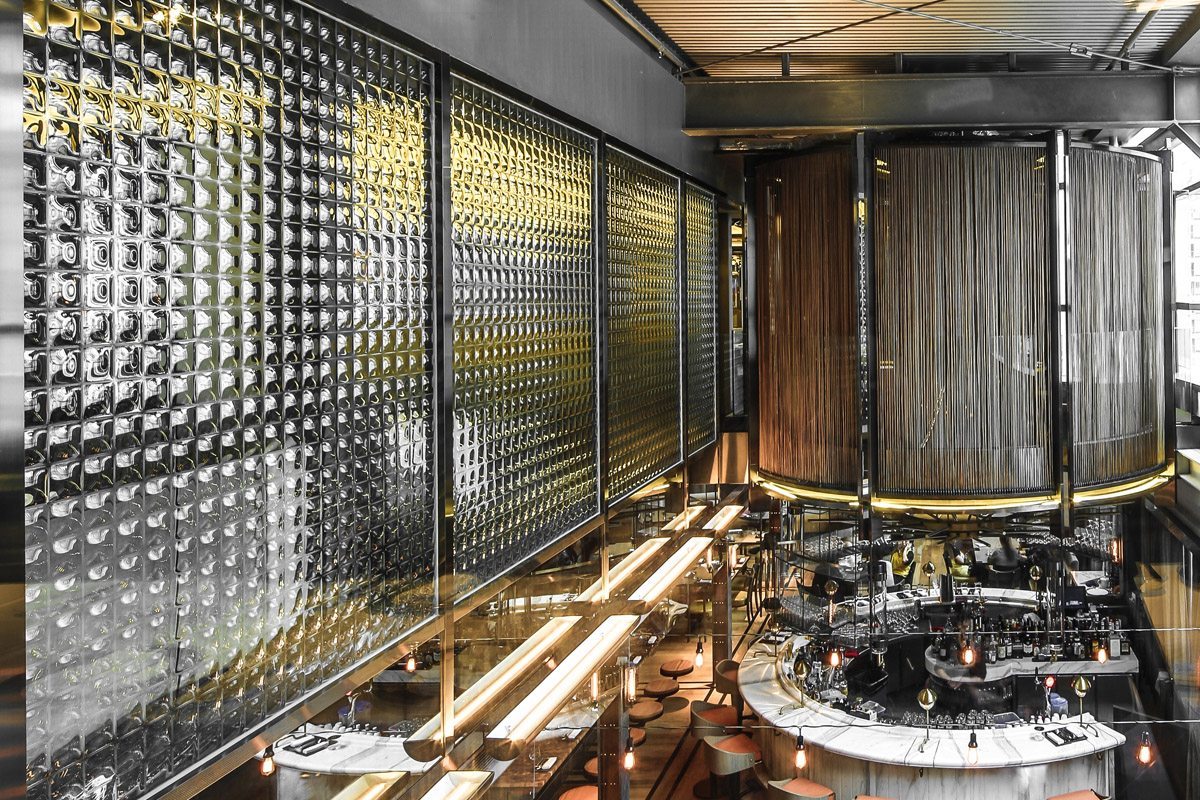Isono Vasco Restaurant Convex Squares Architectural Glass Partition. The Challenge: In a project recognized for innovation, our team was tasked with an assignment to divide two spaces, while remaining true to the design needs of two restaurants in the heart of Hong Kong: Vasco, the Italian “culinary art room,” and Isono, a hearty Spanish social lounge and bar.