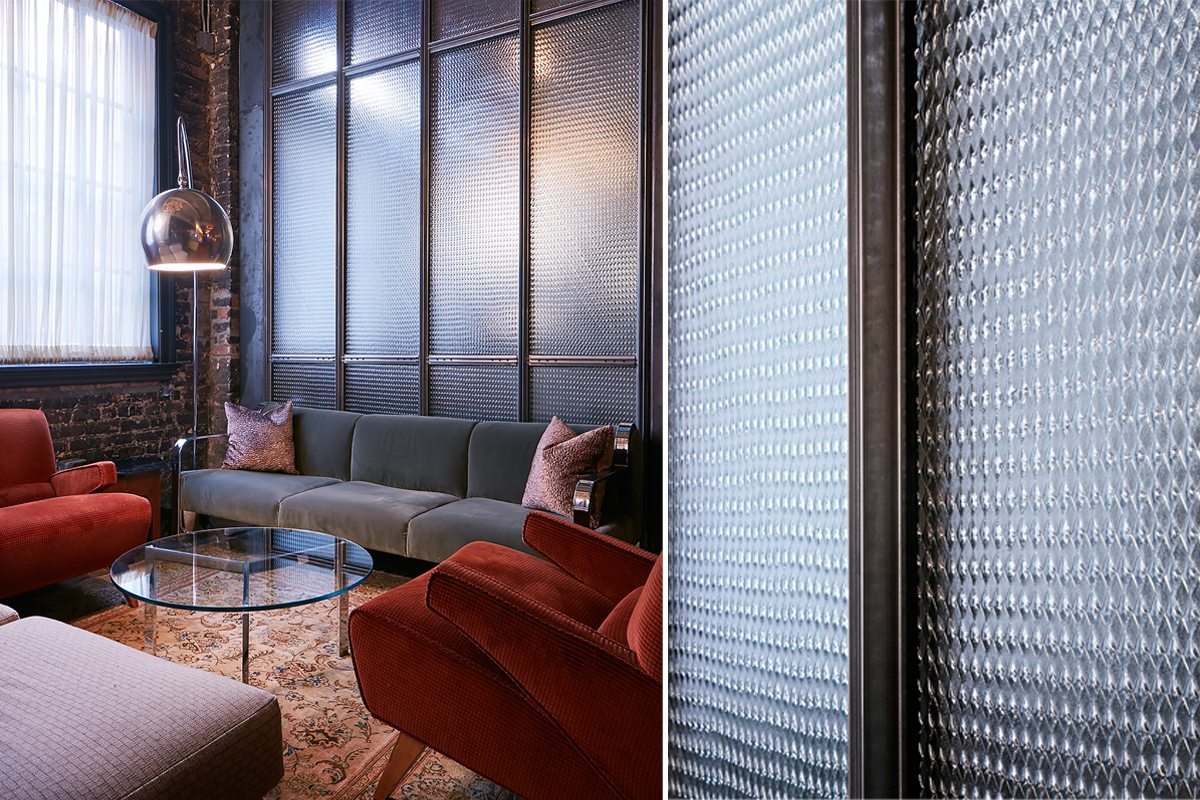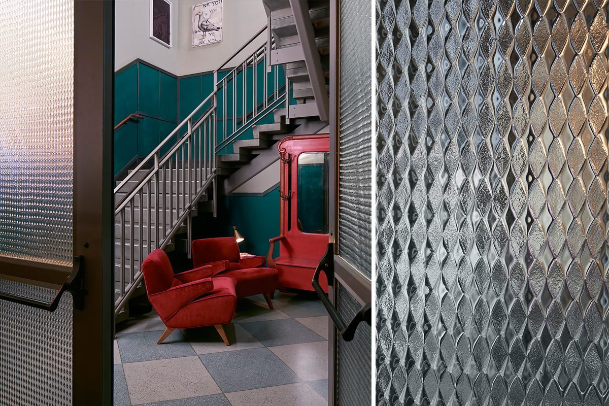 Working with the talented designers of Soho House & Co, Design & Development, Nathan Allan presented various samples of our custom textured glass. Our Jewel texture combines an elegant, antique quality, which fit the design perfectly, enabling the Soho House mission which is “to create a comfortable home from home for our members”.